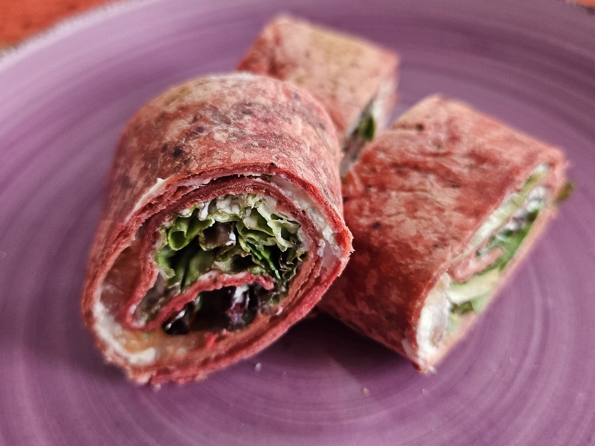 - Snijd de wraps in rolletjes van plusminus 3 cm en serveer.