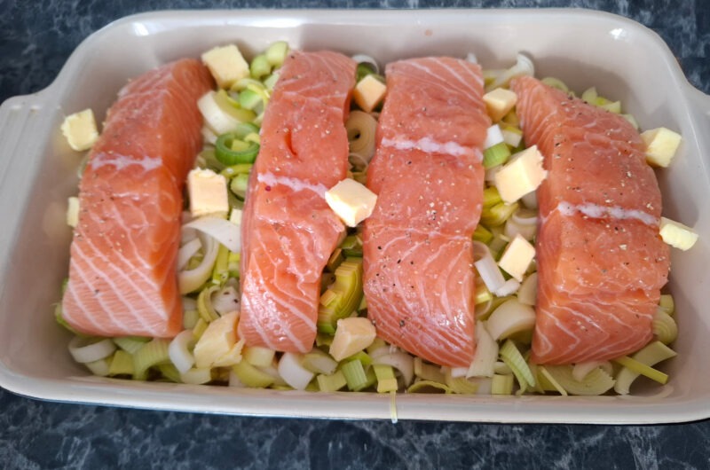 Zalmfilet op een bedje van Prei