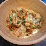 Voeg de gember, ui en knoflook toe en fruit dezer heel even aan. Roer de currypasta erdoor en bak kort mee.