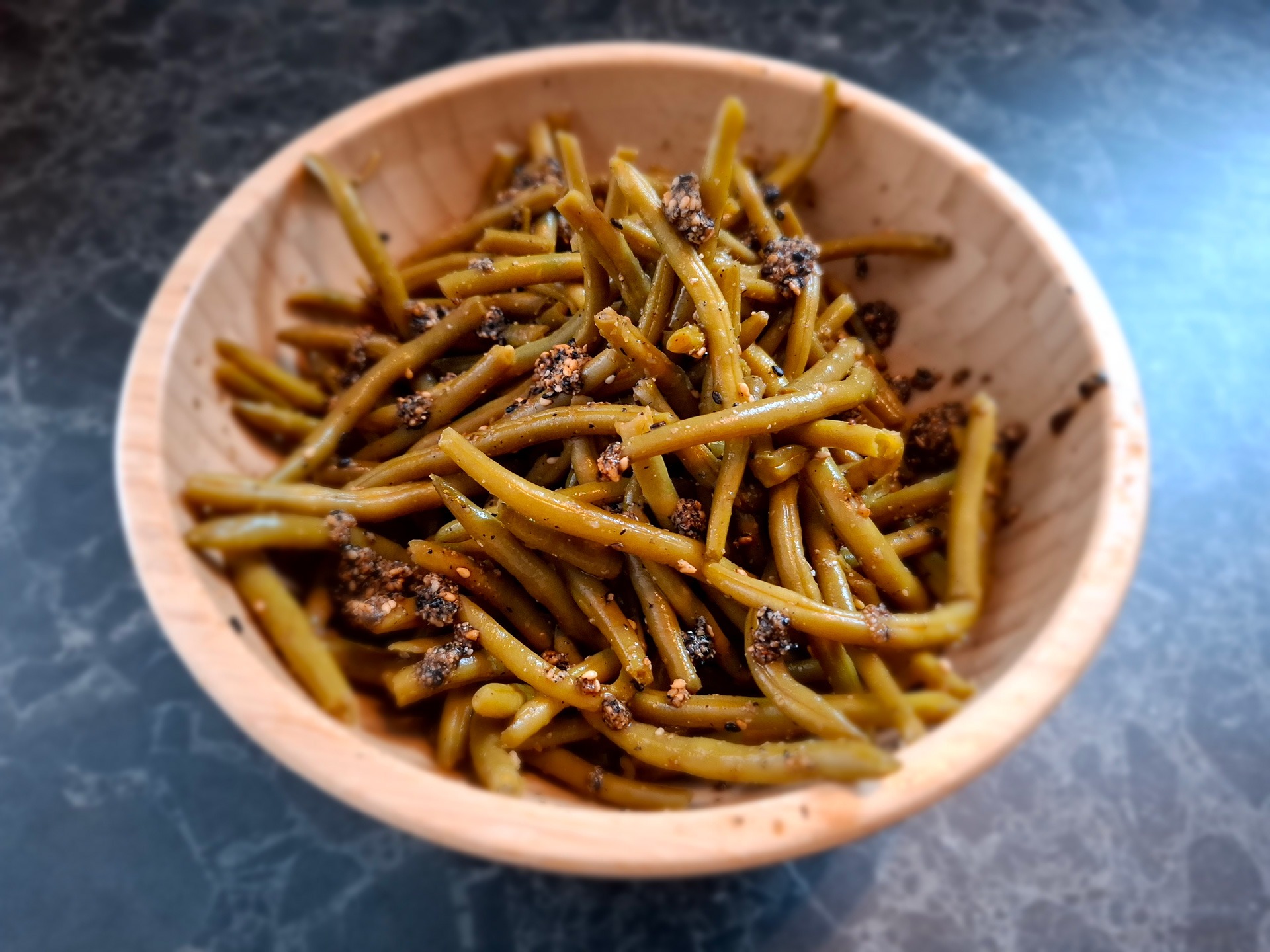 • Doe de boontjes in een kom en voeg de dressing toe. Meng het geheel goed door elkaar en serveer gekoeld of op kamertemperatuur.