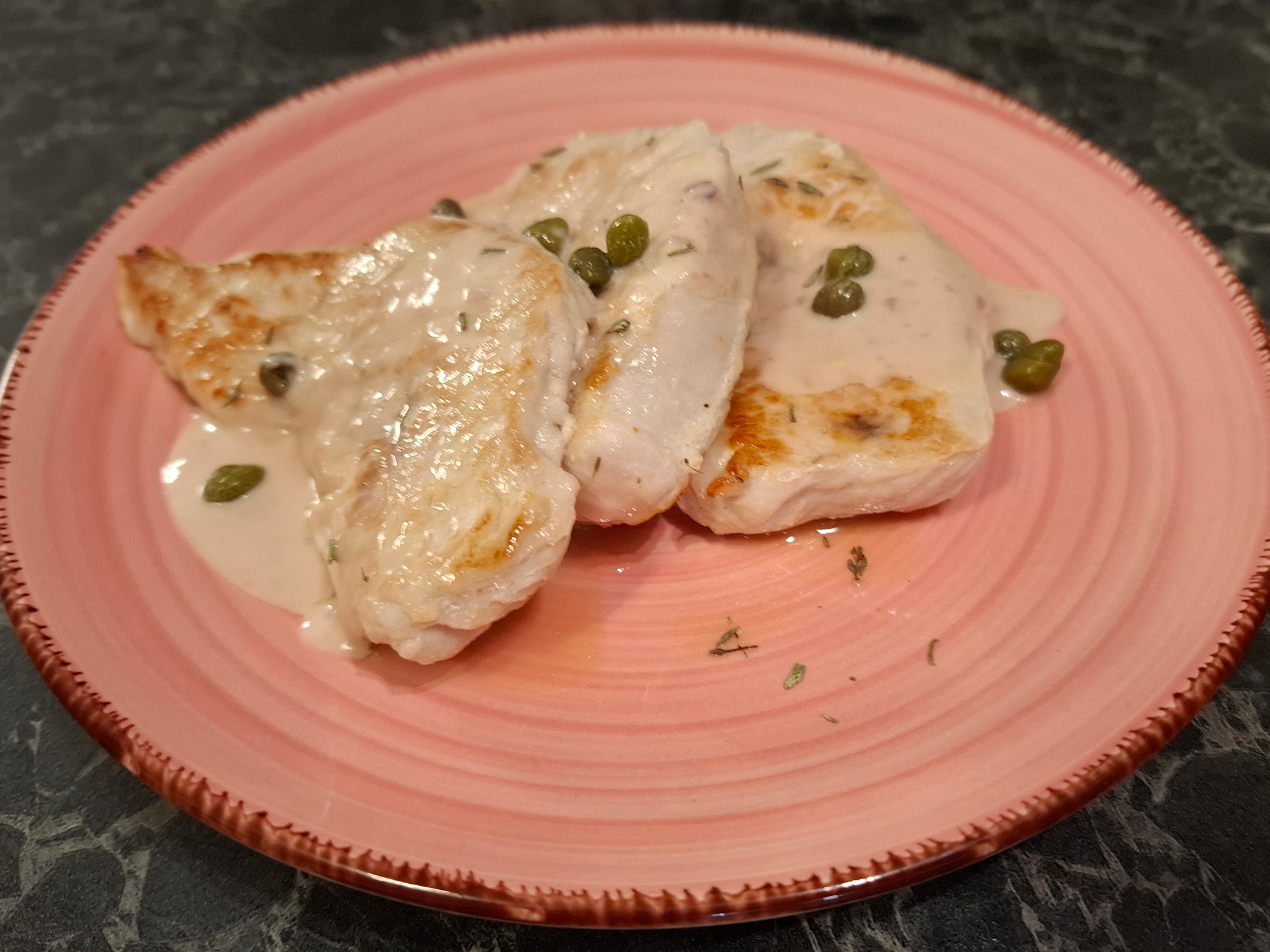 4 kalkoen schnitzels, 250 ml kip of groente bouillon