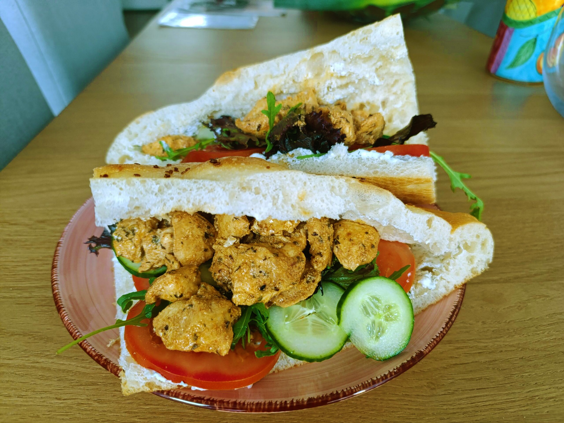 • Doe wat van de kipgyros in een pitabroodje en strooi er wat van je favoriete toppings overheen.