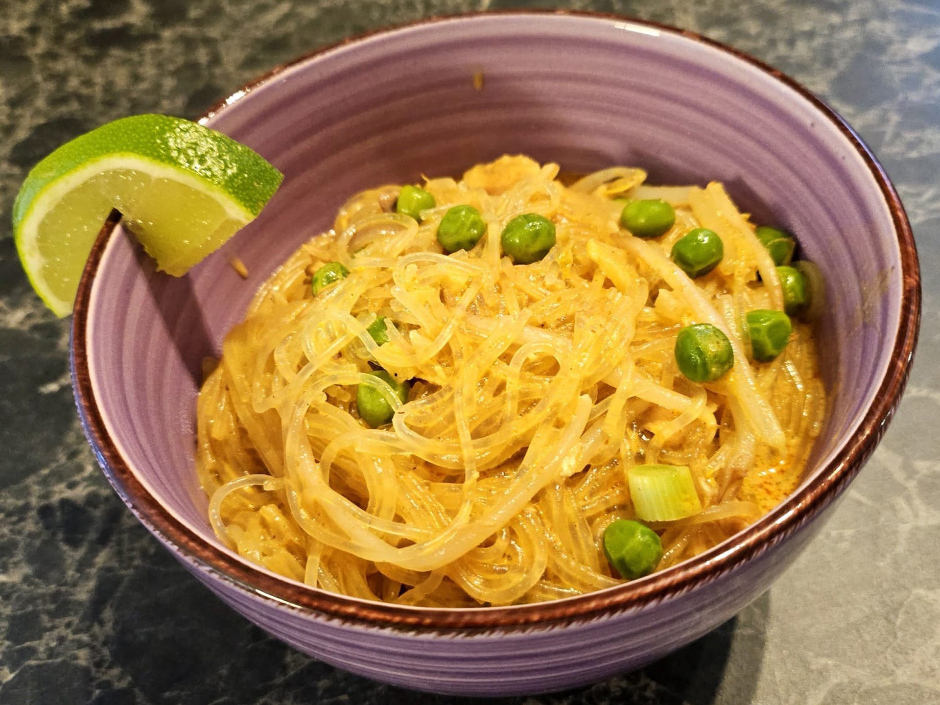 125 gr taugé, 1 handje koriander, 2 bosuitjes, 1 limoen