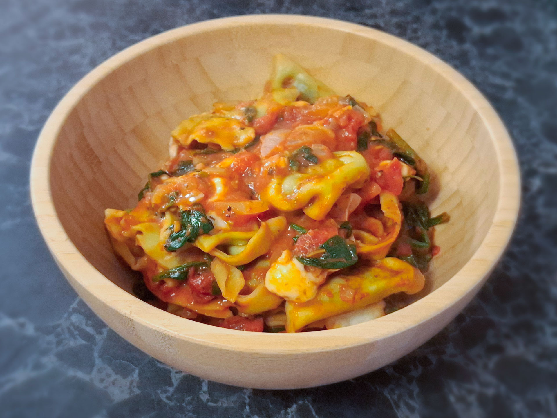 - Snipper de ui en de knoflook fijn en fruit ze aan in een scheutje olijfolie. Voeg vervolgens de spinazie toe en laat slinken. Overgiet het geheel met de tomatenblokjes. Voeg nog het tomatenconcentraat, de blaadjes basilicum, oregano, peper en zout toe.1 ui, 1 teentje knoflook, 200 gr spinazie, 400 gr tomatenblokjes, 1 blikje tomatenpuree, 10 blaadjes basilicum, 1 el oregano, peper, zout, olijfolie