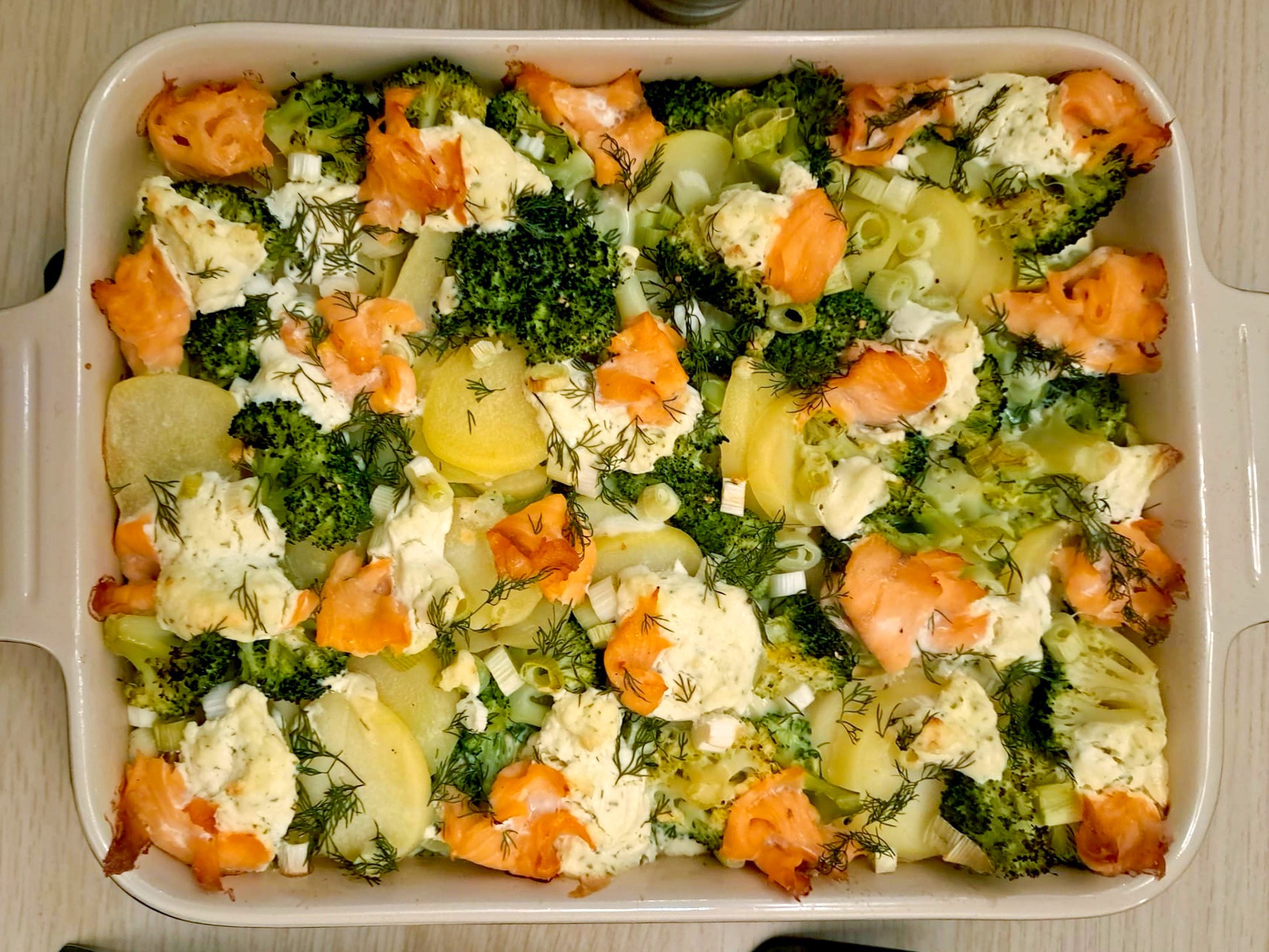 Zet de schaal in het midden van de oven en bak de schotel in 40 minuten mooi bruin en gaar.