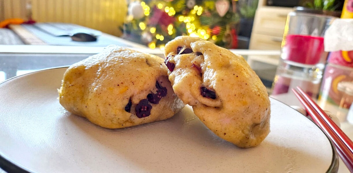 Geüpdatet op juni 10, 2025mei 28, 2025Adventures in Baking Crackers, broodjes & sandwiches Elevensies Munchies & Scrunchies Tussendoortjes ZoetPompoen-cranberry Baozi