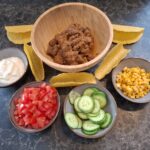 - Maak de pesto: doe de paprika, tabasco, half gedroogde kerstomaatjes, 10 á 12 blaadjes verse basilicum, de pijnboompitjes en het zout en peper in een hakmolentjes van de staafmixer. (halveer de paprika en zongedraagde cherry tomaten indien gewenst)0,5 rode paprika, 3 á 4 scheutjes tabasco, 2 el halfgedroogde kerstomaatjes, 10 á 12 blaadjes verse basilicum, 2 el pijnboompitjes, Zout en peper