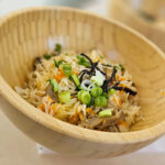 Verdeel vervolgens de saus over de zalmfilets en strooi er de Furikake en de versgemalen peper overheen.