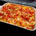 Verwarm intussen de oven voor op 200°C. Was de zuurkool en laat deze nu uitlekken. Snipper de ui en hak de knoflook fijn. Snijd de paprika in blokjes. Ris de blaadjes van de tijmtakjes.
